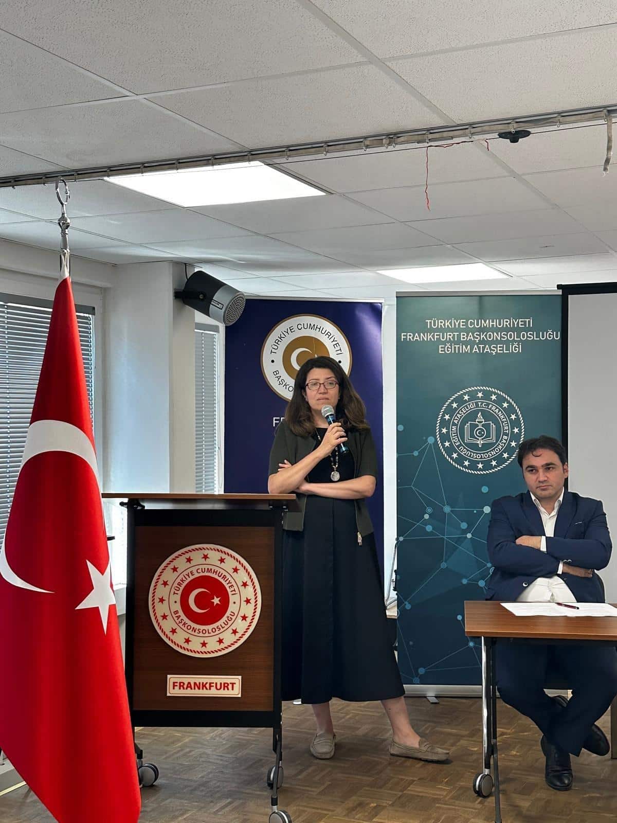 Frankfurt Eğitim Ataşeliği olarak Türk Kültür Merkezimizde yeni eğitim-öğretim yılına güçlü bir başlangıç yaptık. Sayın Başkonsolosumuz İlknur Akdevelioğlu'nun katılımlarıyla gerçekleşen toplantımızda, Türkçe ve Türk Kültürü derslerimizin yaygınlaştırılması, kültürel ve sanatsal faaliyetlerimizin planlamaları üzerine verimli fikir alışverişleri gerçekleştirdik. Aramıza katılan 5 yeni öğretmenimizle birlikte daha da güçlenen 70 kişilik kadromuzla, öğrencilerimizin ve Türk toplumunun hizmetindeyiz.